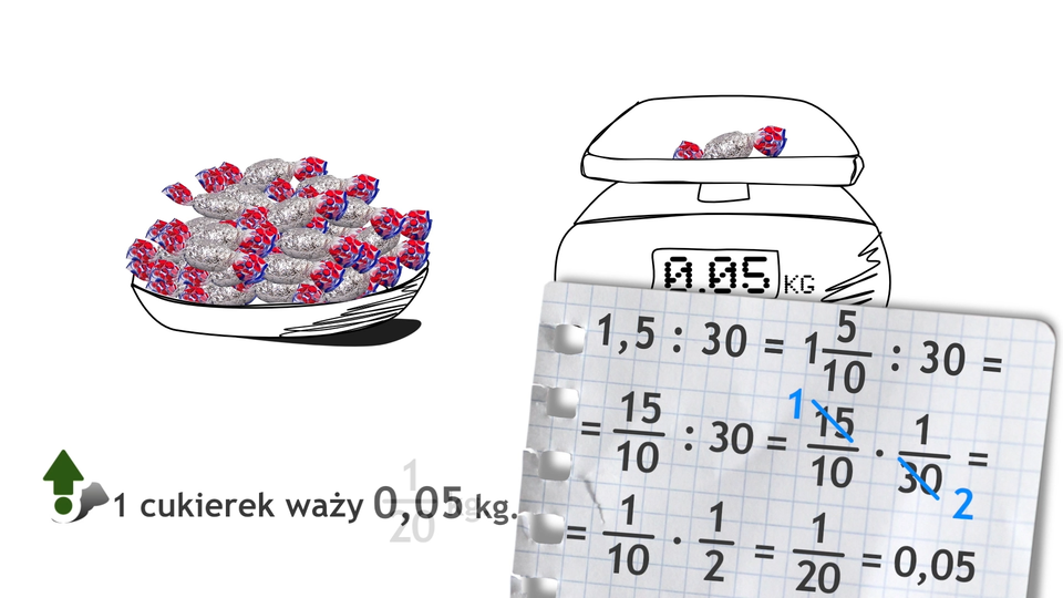 Uzupełnij poniższe luki. Kliknij w nie, aby rozwinąć listę, a następnie wybierz poprawną odpowiedź. Odpowiedź: Jeden cukierek ważył 1. , 2. , 3. , 4. , 5. , 6. , jest to 1. , 2. , 3. , 4. , 5. , 6. .