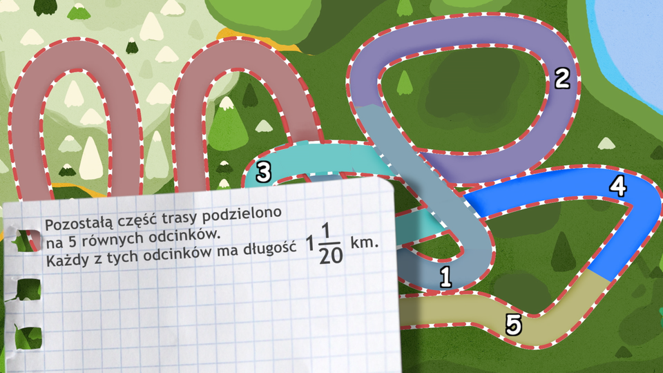 Animacja przedstawia w jaki sposób możemy podzielić pewien ułamek na trzy równe części.