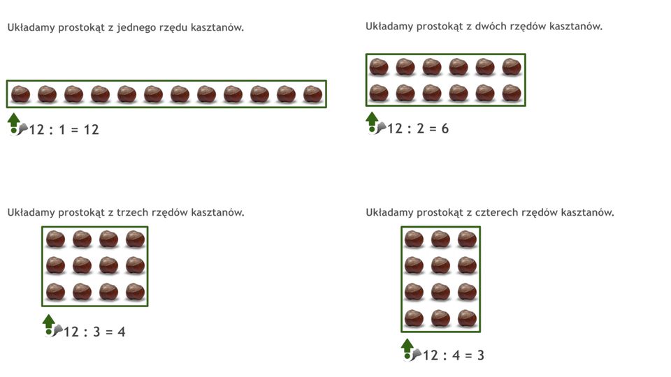Animacja na przykładzie kasztanów pokazuje, w jaki sposób można podzielić liczbę dwanaście.