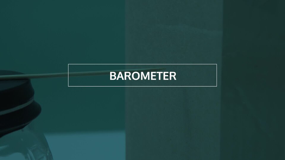 Film prezentujący jak w domowych warunkach zrobić barometr, barometer. Na otwór pustego słoika założona zostaje guma wycięta z balonu i umocowana gumką recepturką. Do gumy przyklejona zostaje wykałaczka. Tak skonstruowany barometr zostaje postawiony przy kartonie, na którym flamastrem oznaczone zostaje wskazanie. W zależności od wzrostu lub spadku ciśnienia wskazówka uniesie się lub opuści.