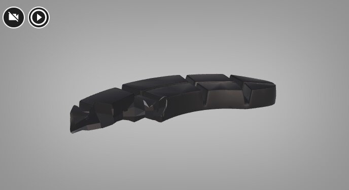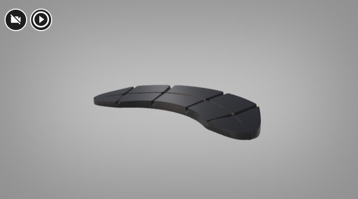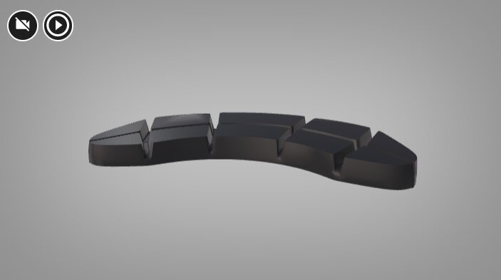 Wizualizacja przedstawia okładzinę hamulcową zużytą nierównomiernie, jej grubość jest znacznie większa przy promieniu zewnętrzny. Oznacza to, że część wewnętrzna zużywa się szybciej niż część zewnętrzna.