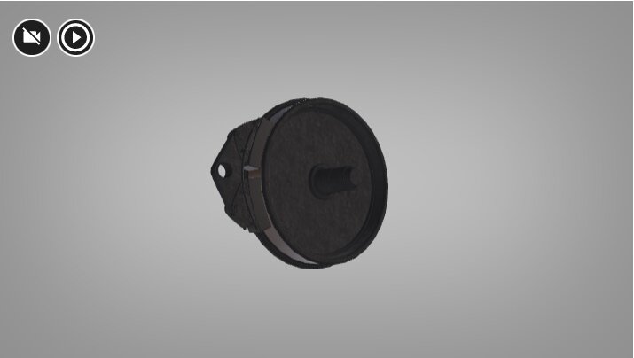 Ilustracja interaktywna przedstawia model zacisku hamulcowego firmy Dako. Składa się on ze srebrnych i granatowych elementów. Na ilustracji są trzy punkty interaktywne.