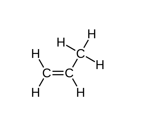 Design a model of the propene molecule composed of three carbon atoms and six hydrogen atoms.