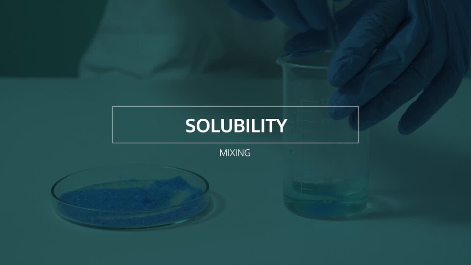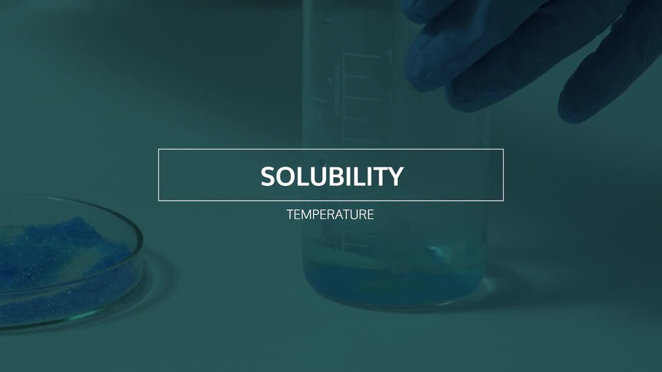 Do wykonania eksperymentu wykorzystane są: siarczan sześć miedzi dwa, bagietka, dwie zlewki z wodą - jedna z ciepłą wodą, druga z zimną. Do pierwszej zlewki z zimną wodą laborant dodaje łyżeczkę siarczanu sześć miedzi dwa (turkusowy proszek), a następnie miesza bagietką, aż do momentu rozpuszczenia. Do drugiej zlewki z ciepłą wodą laborant dodaje łyżeczkę siarczanu sześć miedzi dwa (turkusowy proszek), a następnie miesza bagietką, aż do momentu rozpuszczenia. W ostatniej scenie eksperymentu porównane zostają ze sobą barwy uzyskanych roztworów. Intensywniejszą barwę ma roztwór uzyskany w zlewce z ciepłą wodą, co oznacza, iż siarczan sześć miedzi dwa lepiej rozpuścił się w ciepłej wodzie.