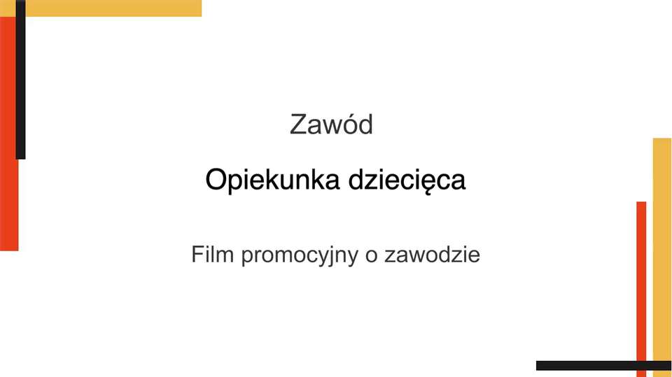 Źródło: GroMar Sp. z o.o., Film promocyjny o zawodzie opiekunka dziecięca, licencja: CC BY-SA 3.0. Obrazy: pixabay.com, pexels.com, unsplash.com, Muzyka: YouTube Library.
