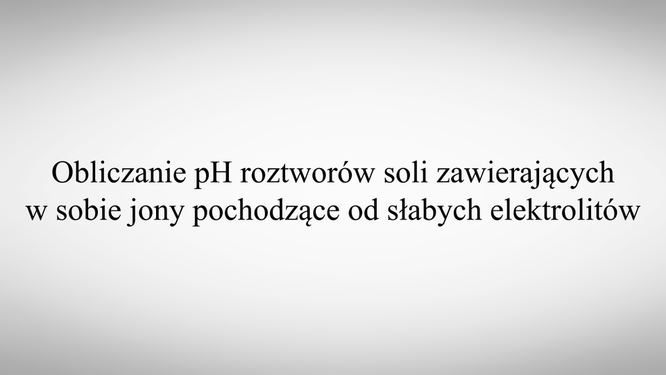 Film opisujący sposób na obliczanie pH roztworu soli posiadającej jony pochodzące od słabych elektrolitów.