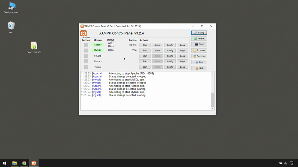 Film przedstawiający wykorzystanie panelu kontrolnego xampp oraz phpmyadmin.