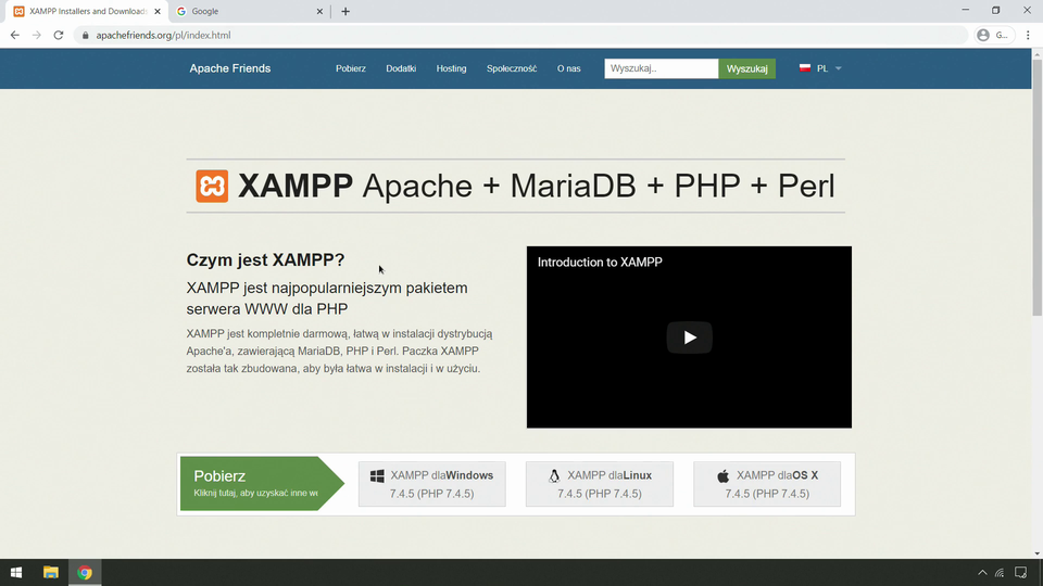 Aby zrealizować ćwiczenia polegające na tworzeniu zapytań w języku SQL, potrzebujemy pakietu o nazwie XAMPP. Zapoznaj się z filmem przedstawiającym zestaw ćwiczeń do tworzenia zapytań SQL, a następnie pobierz i zainstaluj pakiet na swoim komputerze.