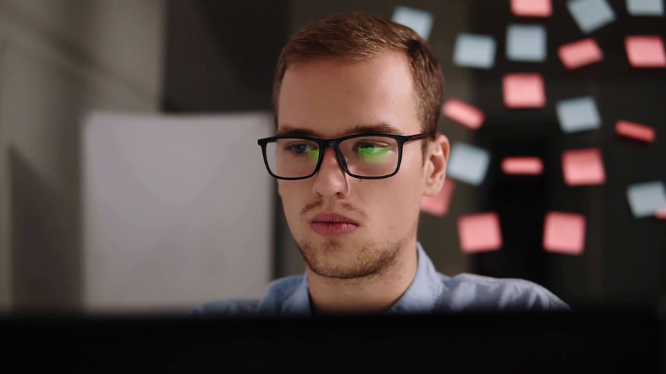Das ist Paul. Paul ist ein erfahrener Programmiererder Programmierer/die ProgrammiererProgrammierer. Wir sehen ihn in seinem Büro, wo er komplexen Code schreibt und an der Entwicklung einer neuen Softwaredie Software/die SoftwaresSoftware arbeitet. Er ist in seinen Monitor vertieft und tippt schnell auf der Tastatur.