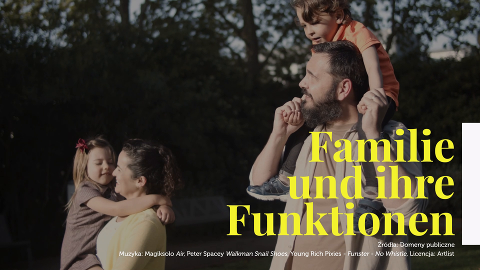 Die Familie bietet als grundlegende soziale Einheitdie Einheit/die EinheitenEinheit den natürlichen und wichtigsten Lebensraum eines jeden Menschen. Sie ist eine einzigartige Gemeinschaft, in der sich die ganzheitlicheganzheitlichganzheitliche Entwicklung des Menschen vollzieht. In der Familie kommt der Mensch zur Welt, er wächst auf, entwickelt sich, bildet seine Persönlichkeit, formt sein Wertesystem und lernt, ein vollwertiges Mitglied der Gesellschaft zu werden. Familie erfüllt also einige grundlegende Funktionen. Dazu gehören Fortpflanzungdie FortpflanzungFortpflanzung, Fürsorge, Sozialisation, Liebe und die Befriedigung der Grundbedürfnissedie Befriedigung der GrundbedürfnisseBefriedigung der Grundbedürfnisse. Sie bietet ihrem Nachwuchs die Möglichkeit zur Entfaltungdie EntfaltungEntfaltung und die Hoffnung auf eine gute Zukunft der Familiengemeinschaft.