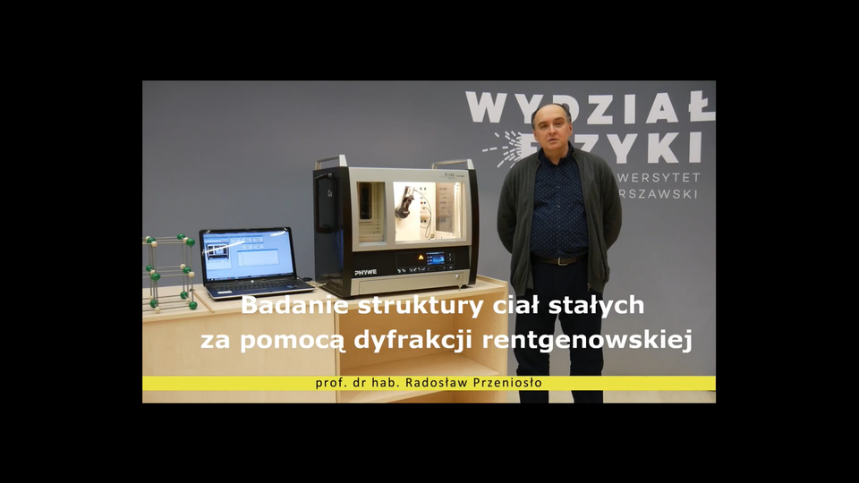 Zapoznaj się z audiodeskrypcją filmu. Wysłuchaj uważnie wykładu fizyka profesora doktora habilitowanego Radosława Przeniosło prezentującego badania struktury ciał stałych za pomocą dyfrakcji rentgenowskiej.