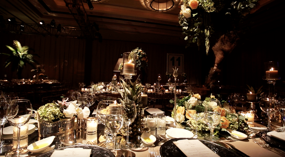 Fotografie udekorowanych sal i nakrytych stołów bankietowych