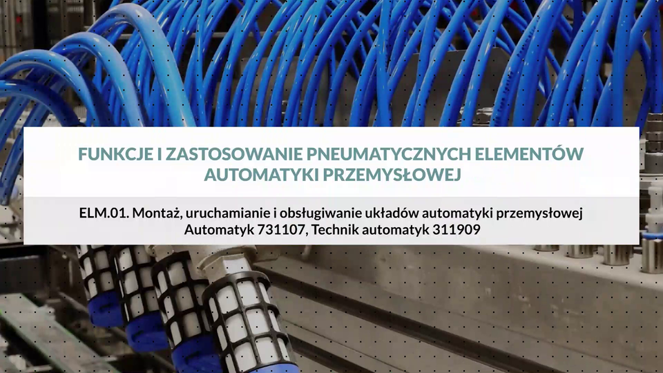 Animacja pt. " Funkcje i zastosowanie pneumatycznych elementów automatyki przemysłowej dla klasyfikacji ELM.01. Montaż uruchamianie i obsługiwanie układów automatyki przemysłowej, zawód Automatyk 731107 technik automatyk 311909