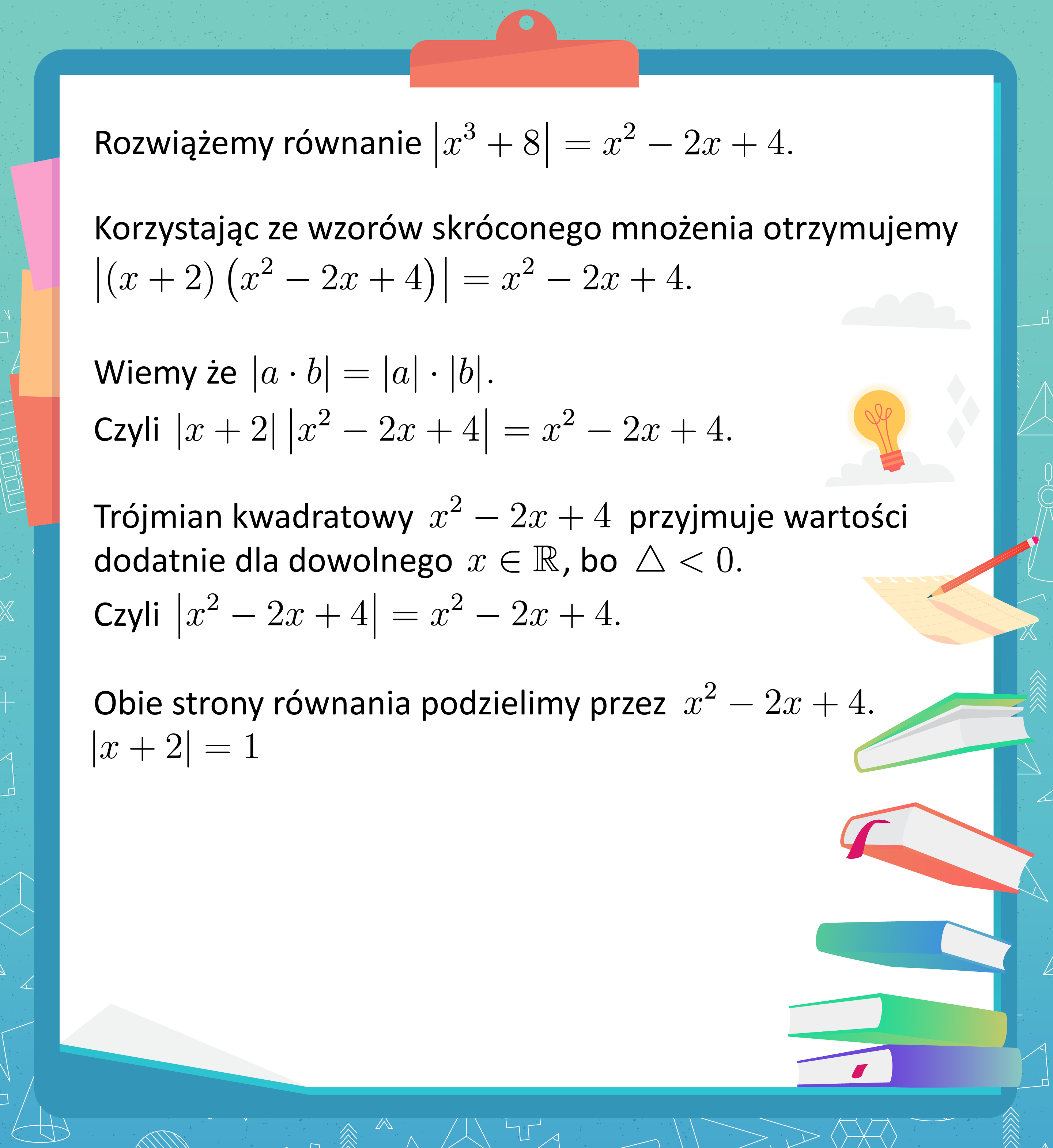 1. {audio}Pokażemy sposób rozwiązywania równania wielomianowego z wartością bezwzględną.