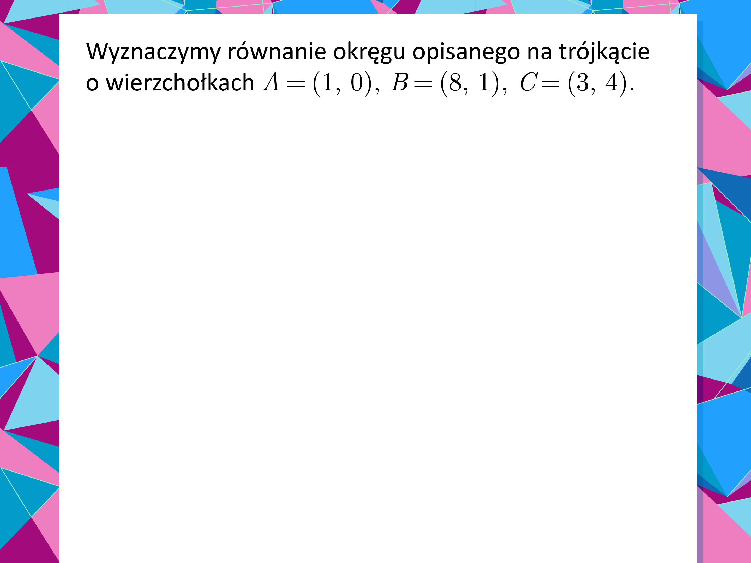 1. {audio}Wyznaczymy równanie okręgu opisanego na trójkącie .