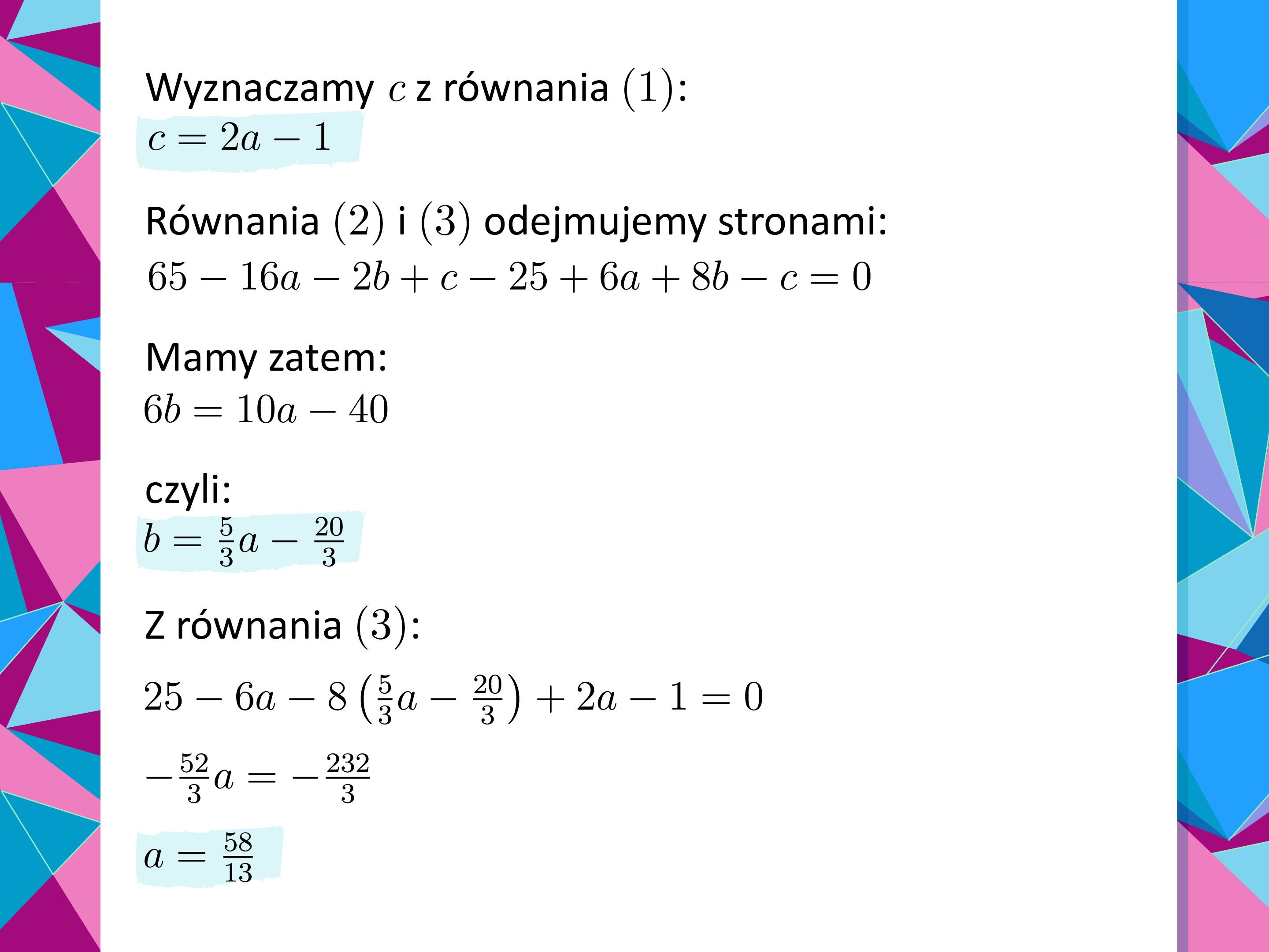 1. {audio}Wyznaczone podstawiamy do równania trzeciego i wyliczamy wartość .