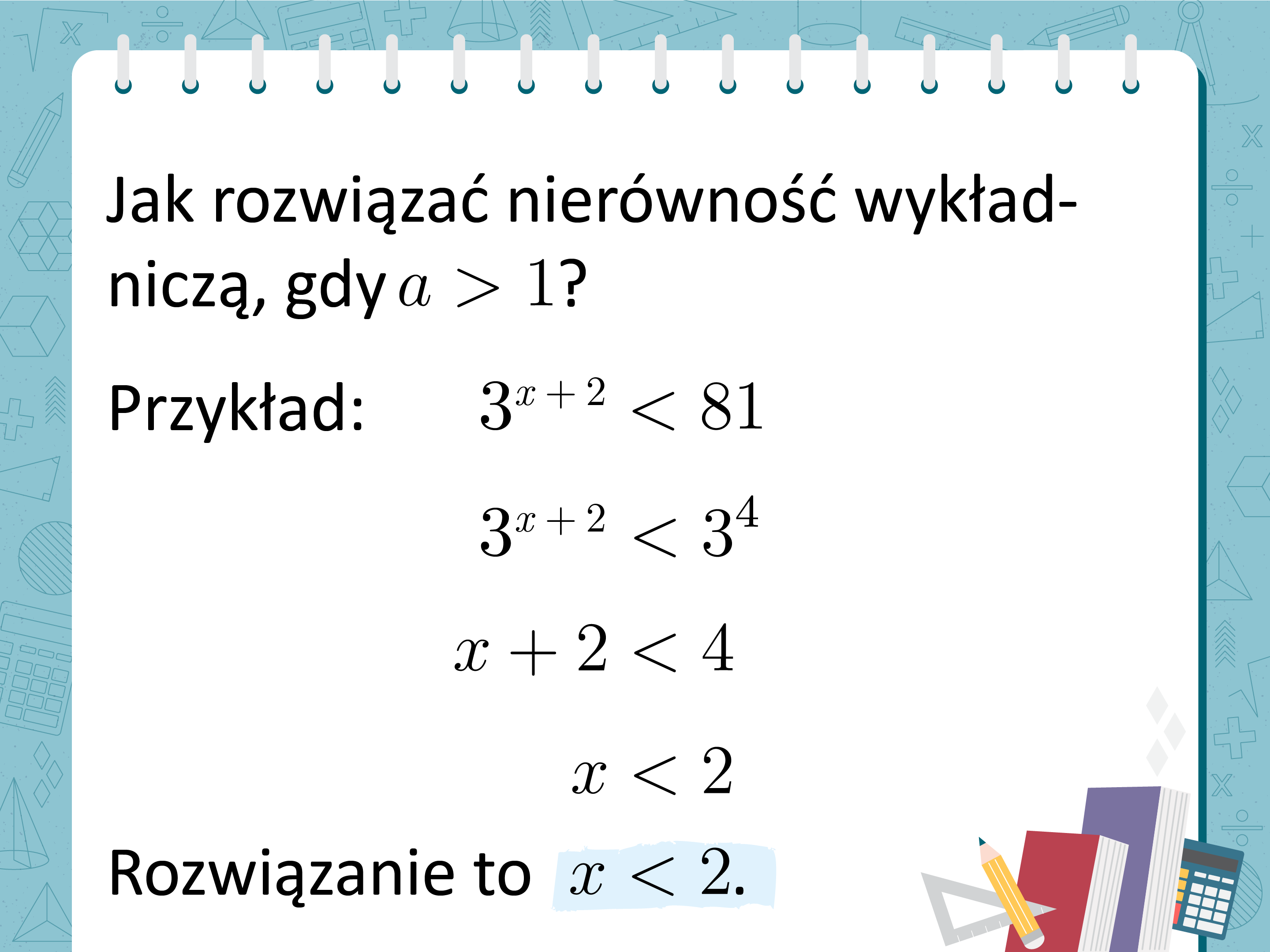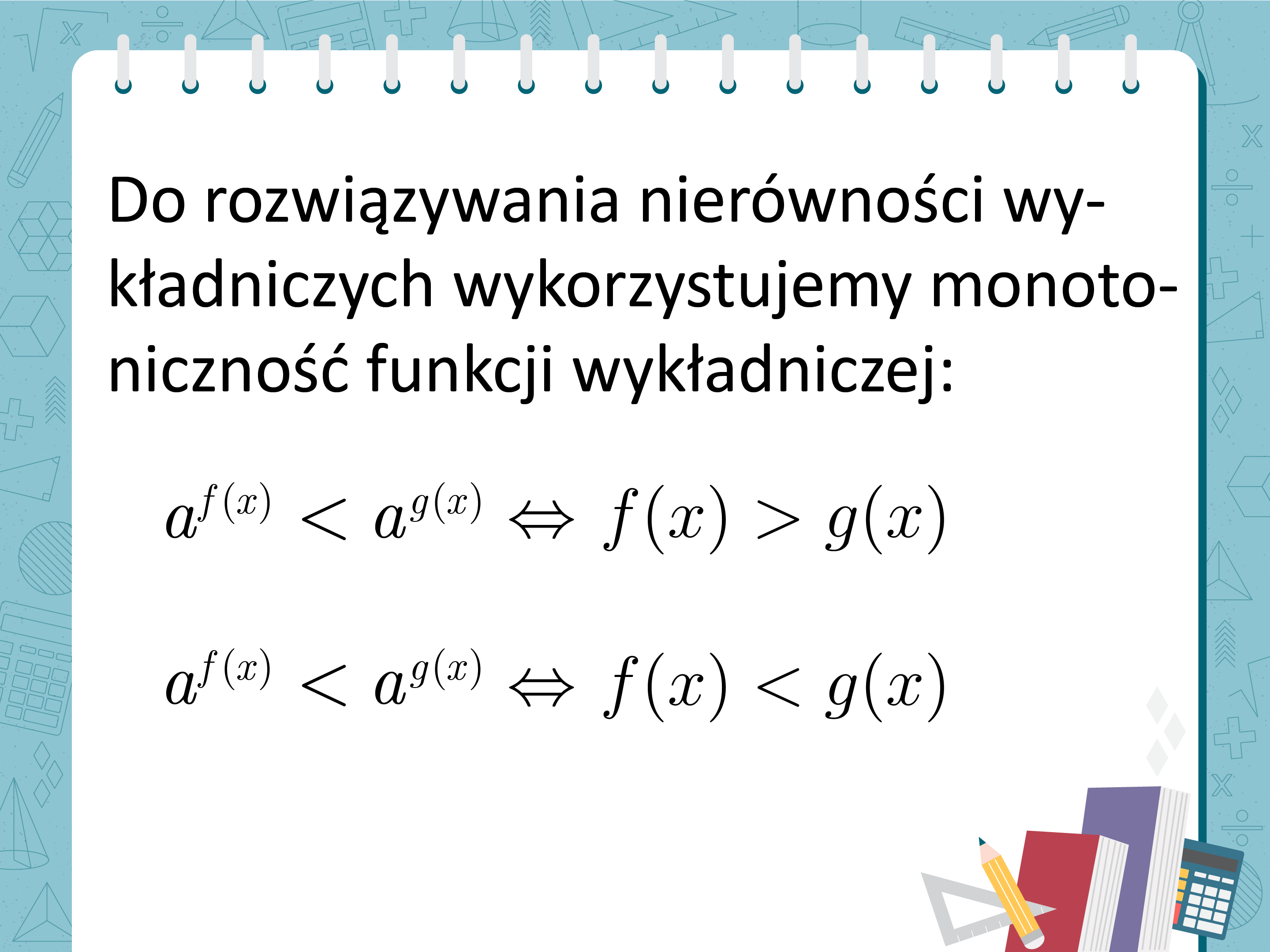 Ponieważ , zatem z monotoniczności funkcji wykładniczej otrzymujemy nierówność:
