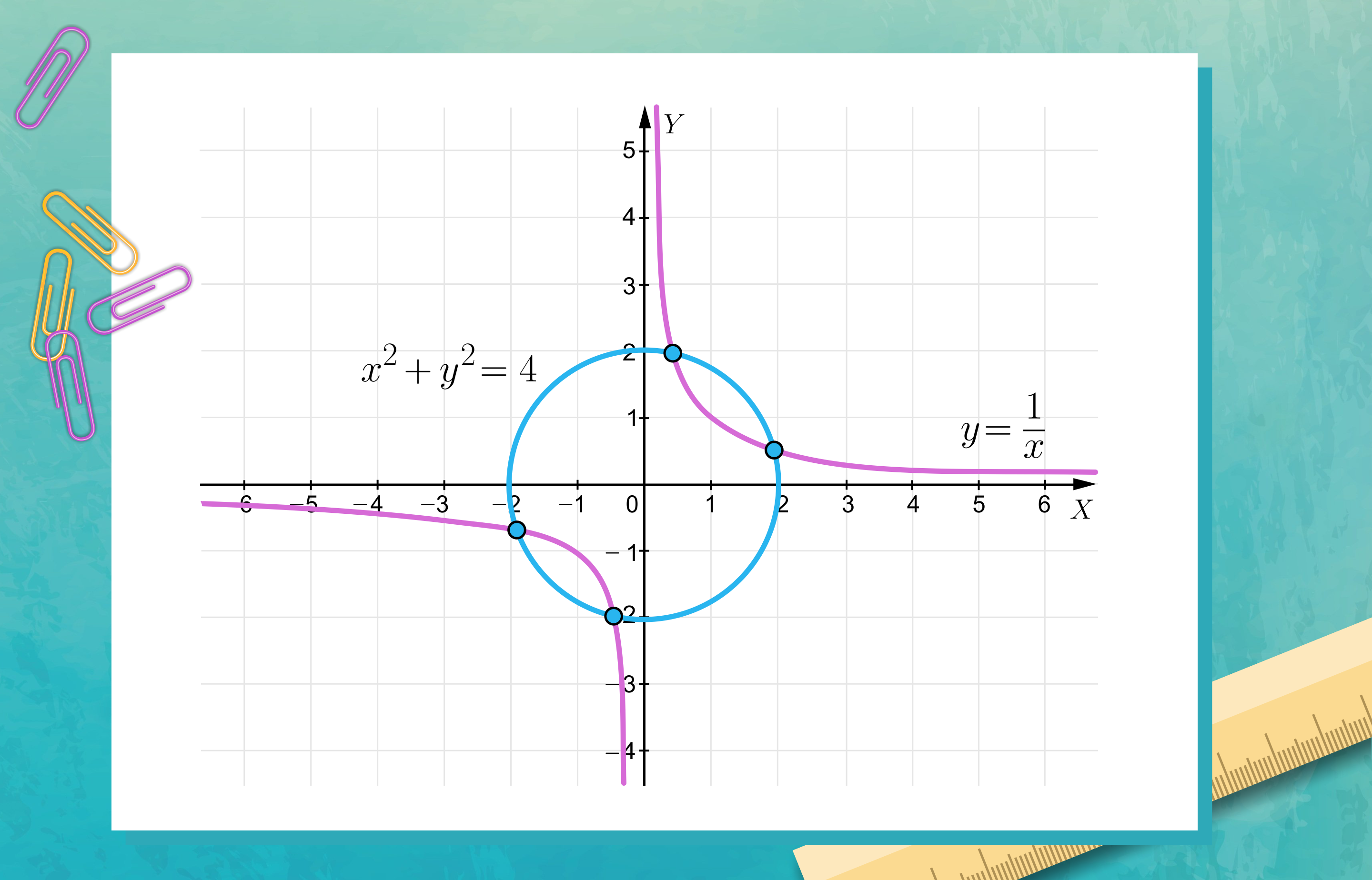 2. Punkty należą jednocześnie do obu wykresów – ich współrzędne spełniają więc każde z równań i są rozwiązaniami układu równań.