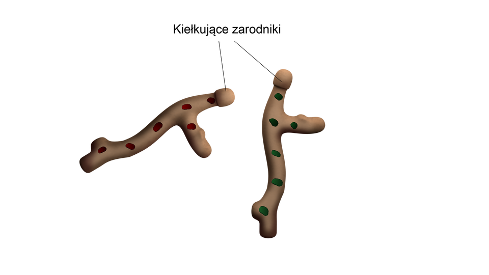 Z zarodników (n) wyrastają nitkowate, wielojądrowe, haploidalne strzępki grzybni, które są zróżnicowane płciowo.