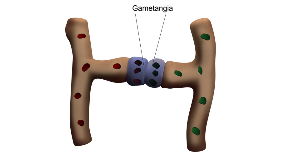 Zachodzi gametangiogamia – rozpuszczenie ściany oddzielającej od siebie gametangia, powstałe na szczytach strzępek. W wyniku gametangiogamii następuje plazmogamia, czyli połączenie zawartości gametangiów.