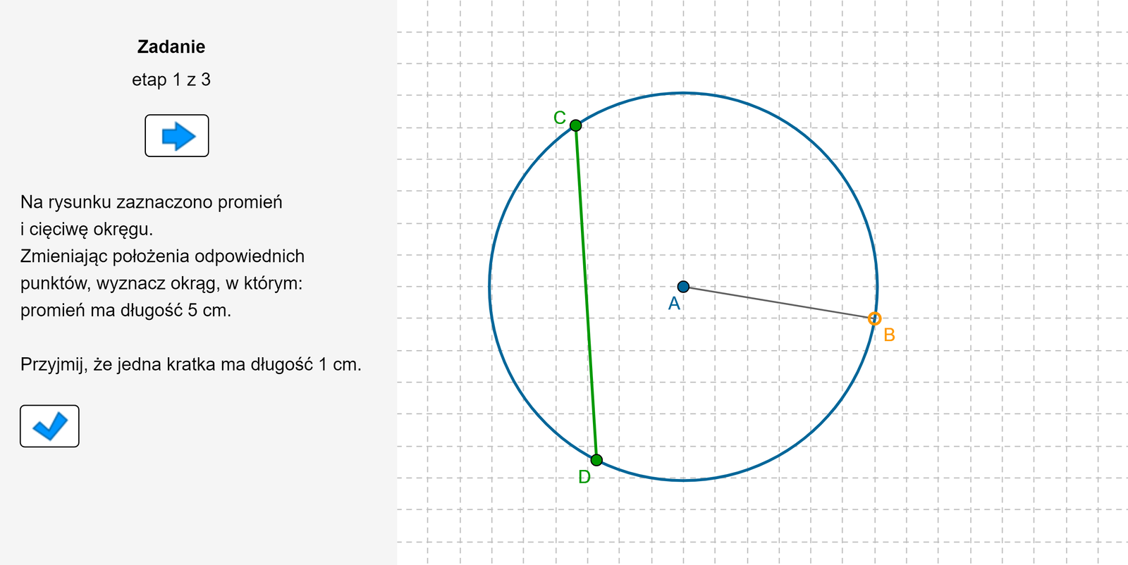 W 1. trójkącie, 2. trzy części, 3. równoramienny, 4. przekątne, 5. równoboczny, 6. okręgu, 7. boki, 8. pół, 9. kąty, 10. kwadratem, 11. równoległobokiem nie występują przekątne, tylko cięciwy.