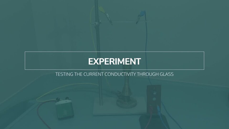 Film przedstawia eksperyment: testing the current conductivity through glass (czyli testowanie przewodności prądu przez szkło). Do przeprowadzenie eksperymentu potrzebne są: glass, burner, electric cables, light bulb and flat battery (czyli szkło, palnik, kable, żarówka i płaska bateria). Przebieg eksperymentu: za pomocą palnika podgrzej szkło podpięte do kabli połączonych z baterią i żarówką. W wyniku nagrzewania żarówka powinna się zapalić.