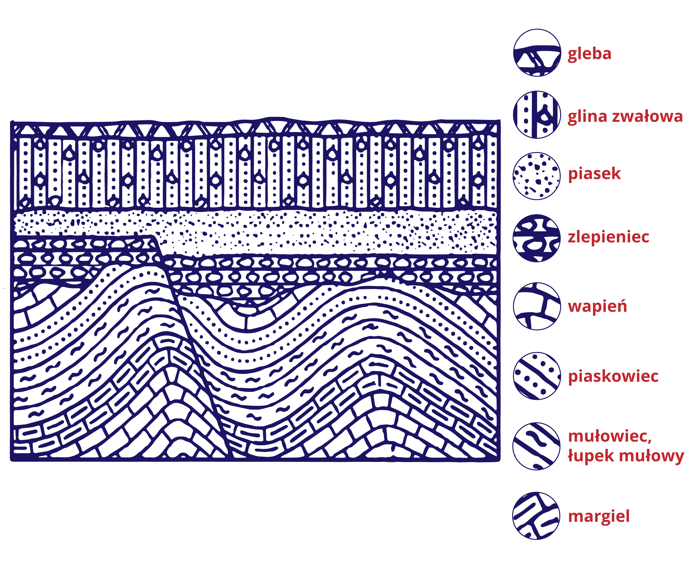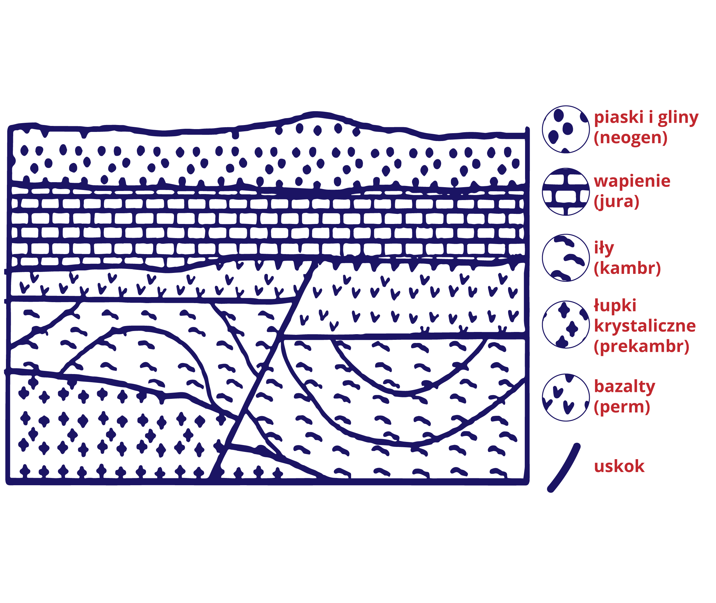 Na obszarze, którego budowę geologiczną przedstawia przekrój, nie występowały...