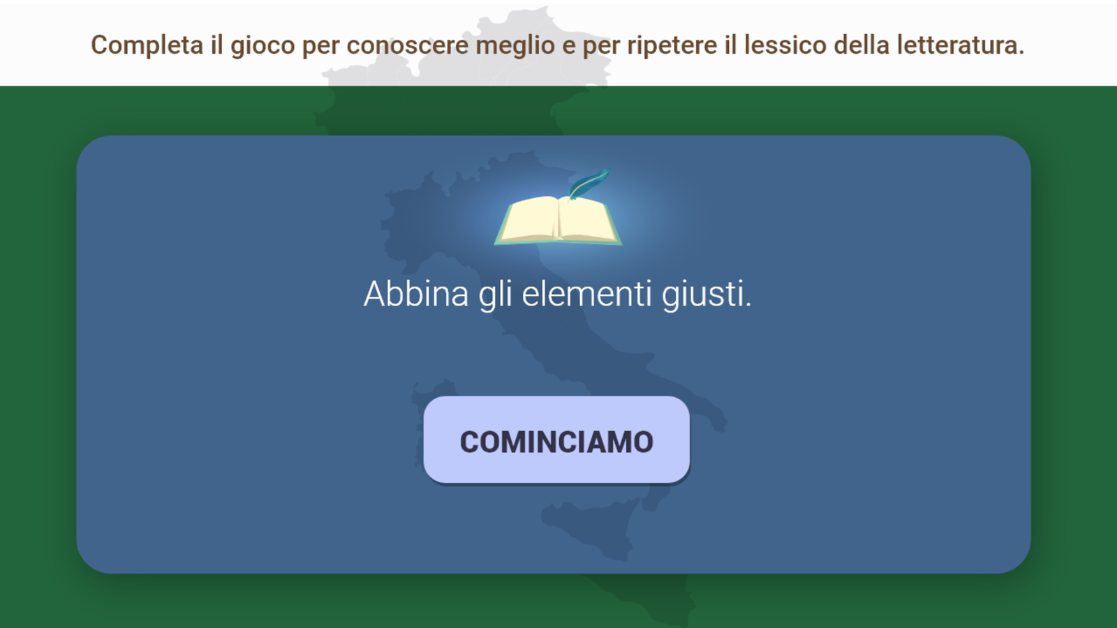 Completa il gioco per conoscere meglio e per ripetere il lessico della letteratura.