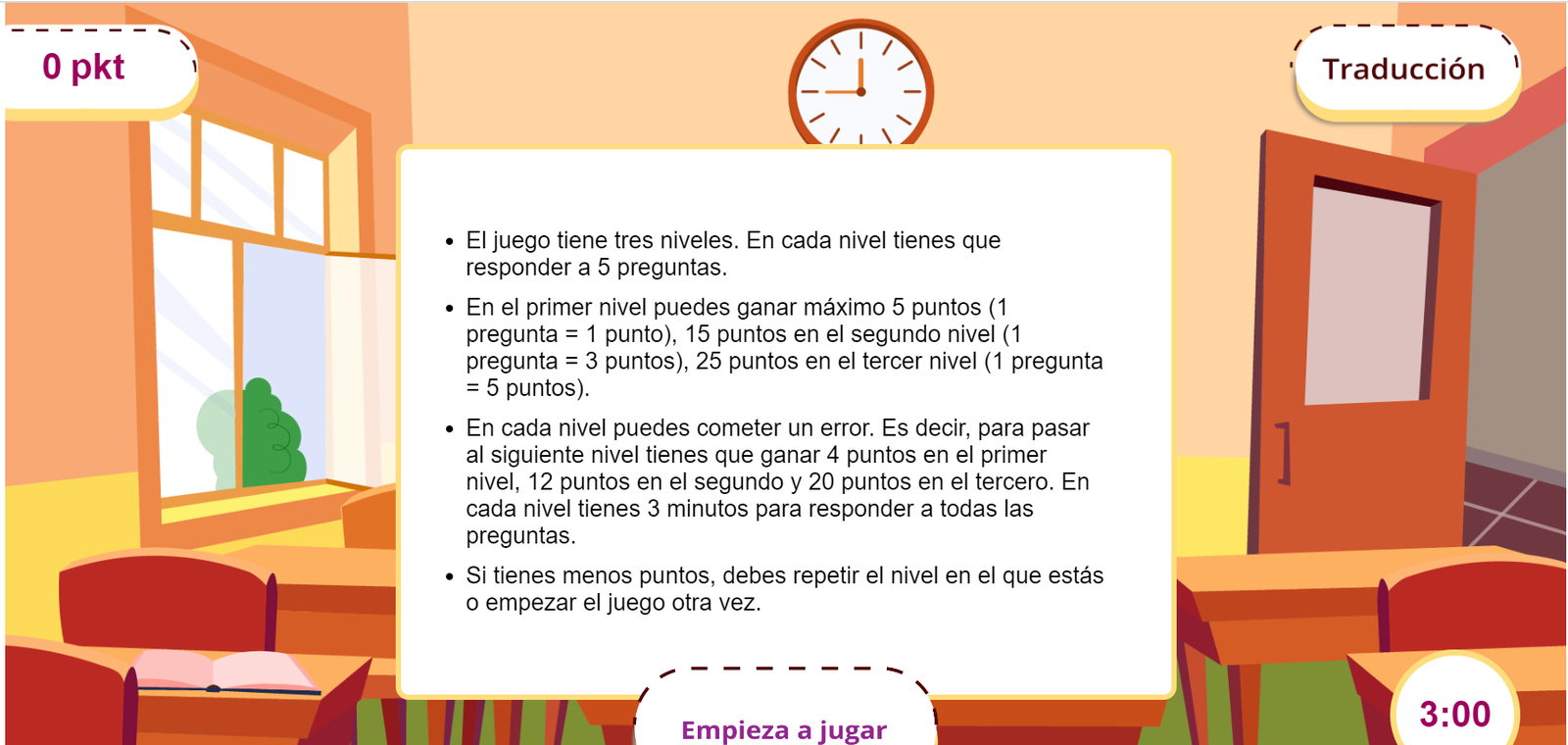 Tienes un nuevo compañero de clase. Te visita para hablar contigo y conocer mejor cómo funciona tu escuela. Todavía no conoce las normas que hay en tu clase. Tienes que ayudarlo a hacer las preguntas correctas. Elige la palabra adecuada en cada pregunta.