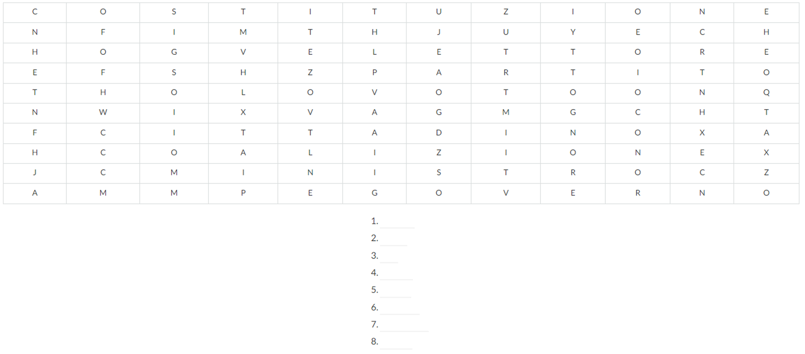 Completa il gioco per conoscere meglio e per ripetere il lessico della politica.