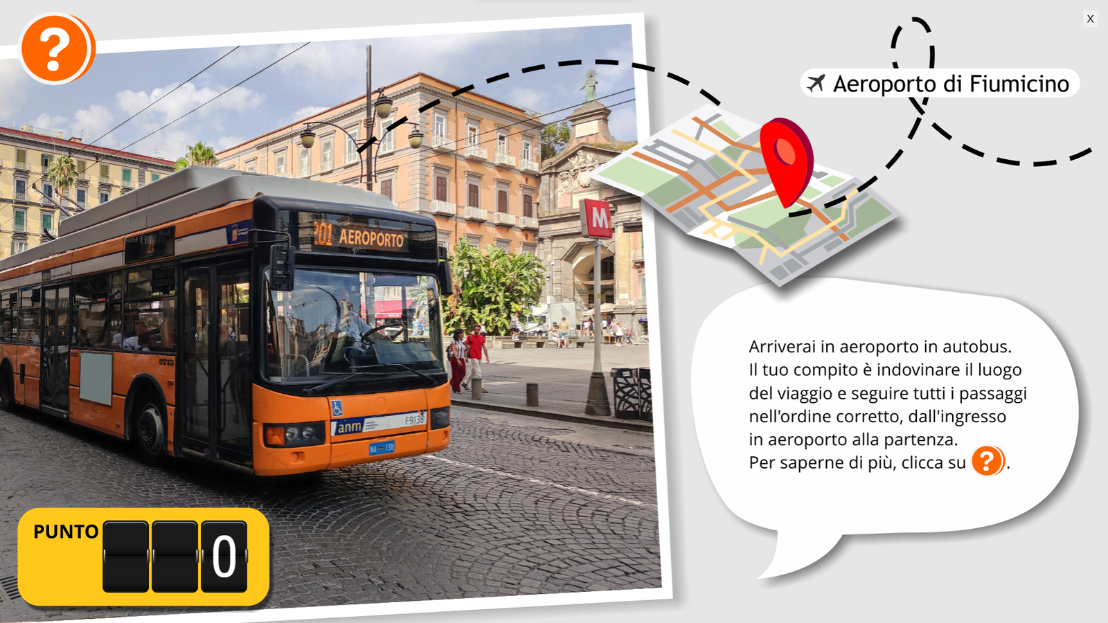 Gioca e raccogli i punti. Durante il gioco osserva le procedure che devi effettuare per volare e nota le parole nuove. Attenzione! Non hai ancora il biglietto.