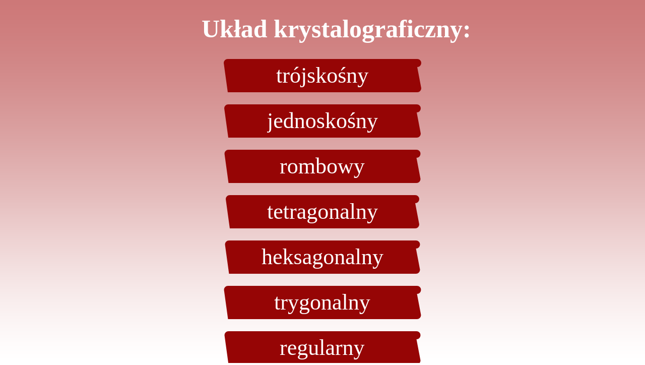 Czy potrafisz dokonać podziału układów krystalograficznych? Czy wiesz, jakie parametry je charakteryzują? Potrafisz podać przykład kryształu dla każdego z nich? Zapoznaj się z opisem układów, a następnie rozwiąż ćwiczenia.