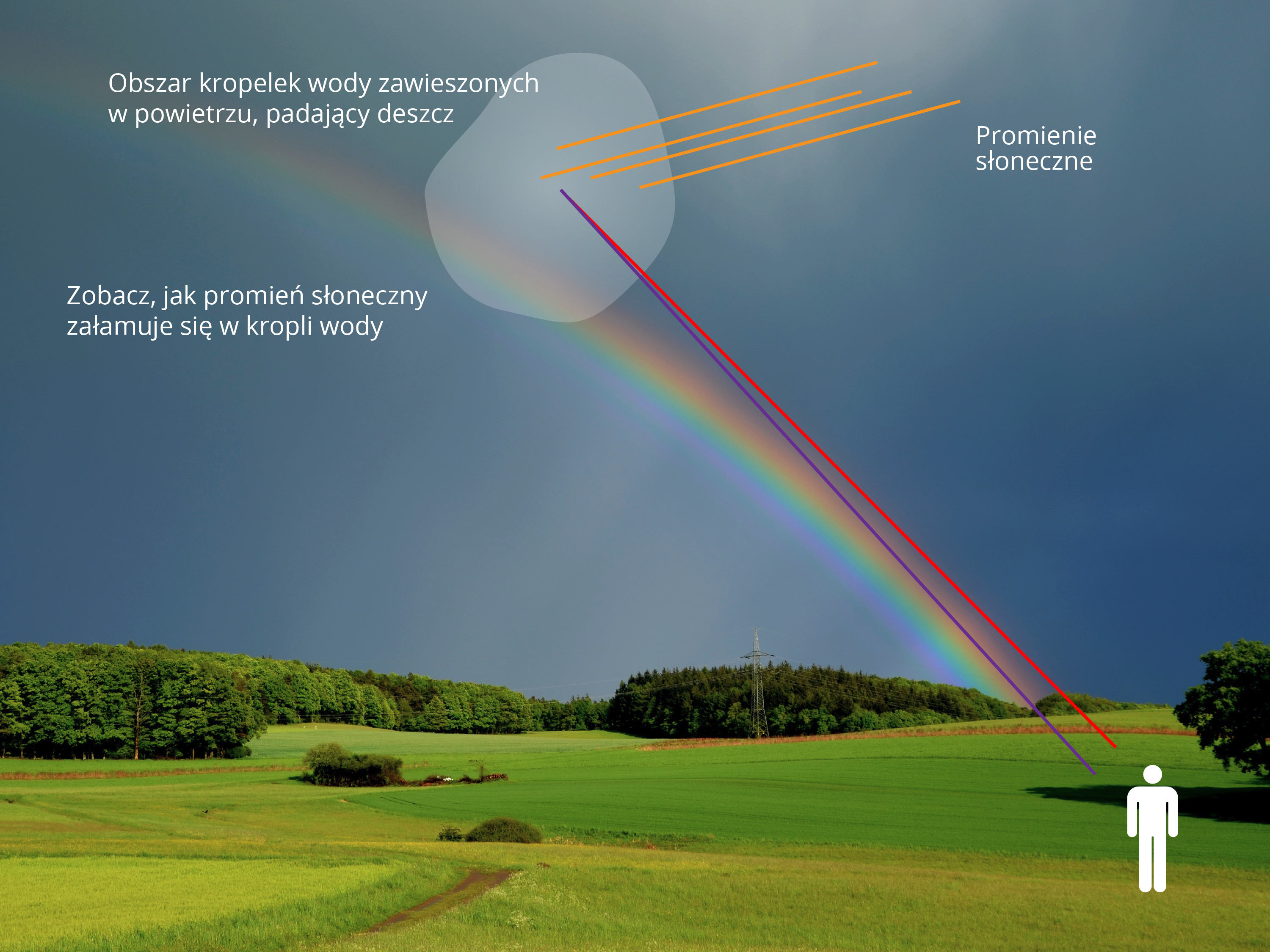 Obejrzyj grafikę interaktywną, aby zrozumieć, jak powstaje tęcza.