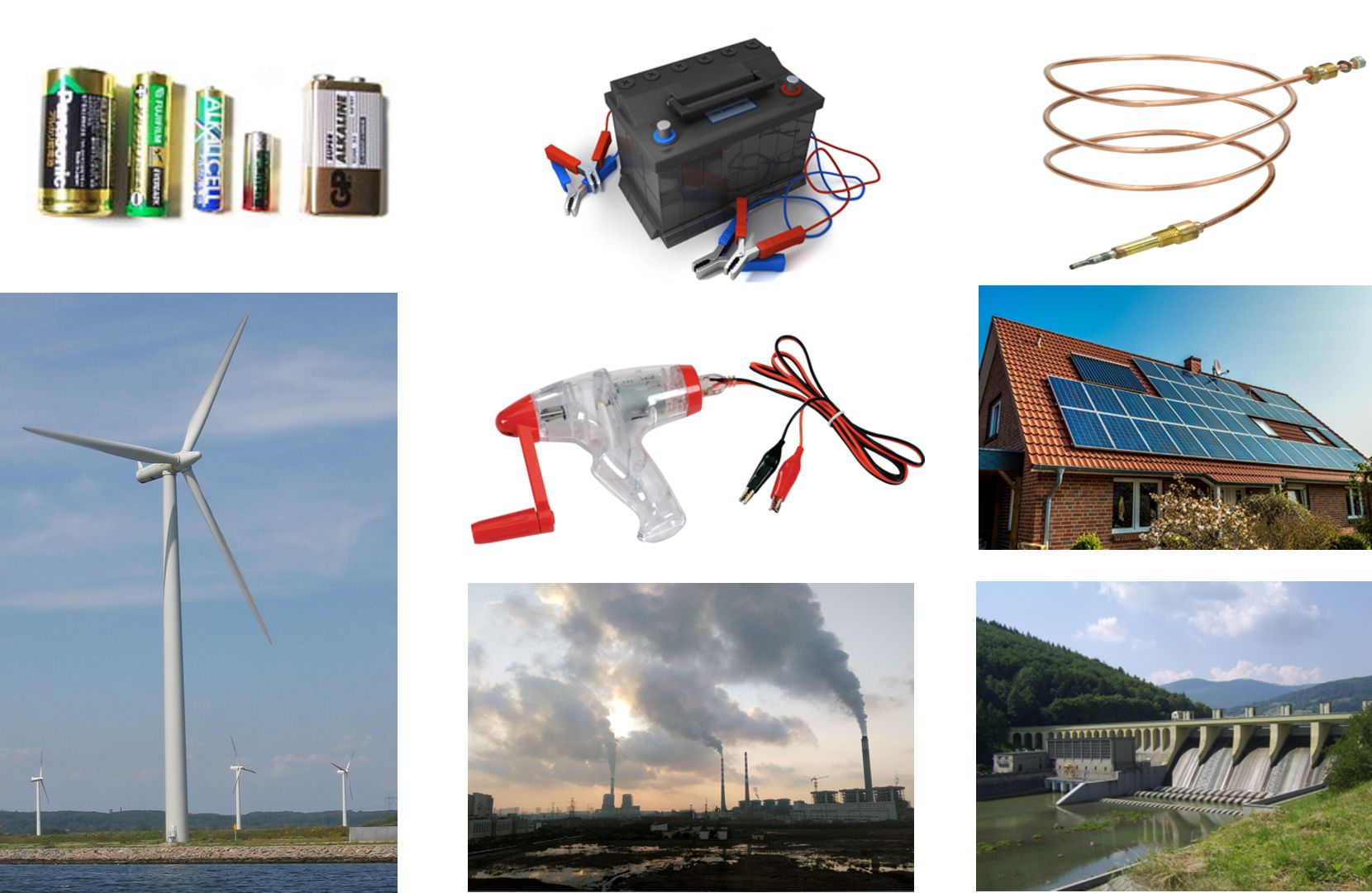 Oczywiście elektrownie jądrowe, geotermalne, pływowe. Z mniej oczywistych przykładów, piezoelektryki (kryształy generujące napięcie pod wpływem odkształceń), komórki organizmu, warzywa.