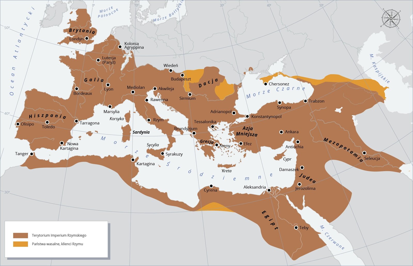 • Wskazywać na mapie oraz nazywać najważniejsze prowincje rzymskie.