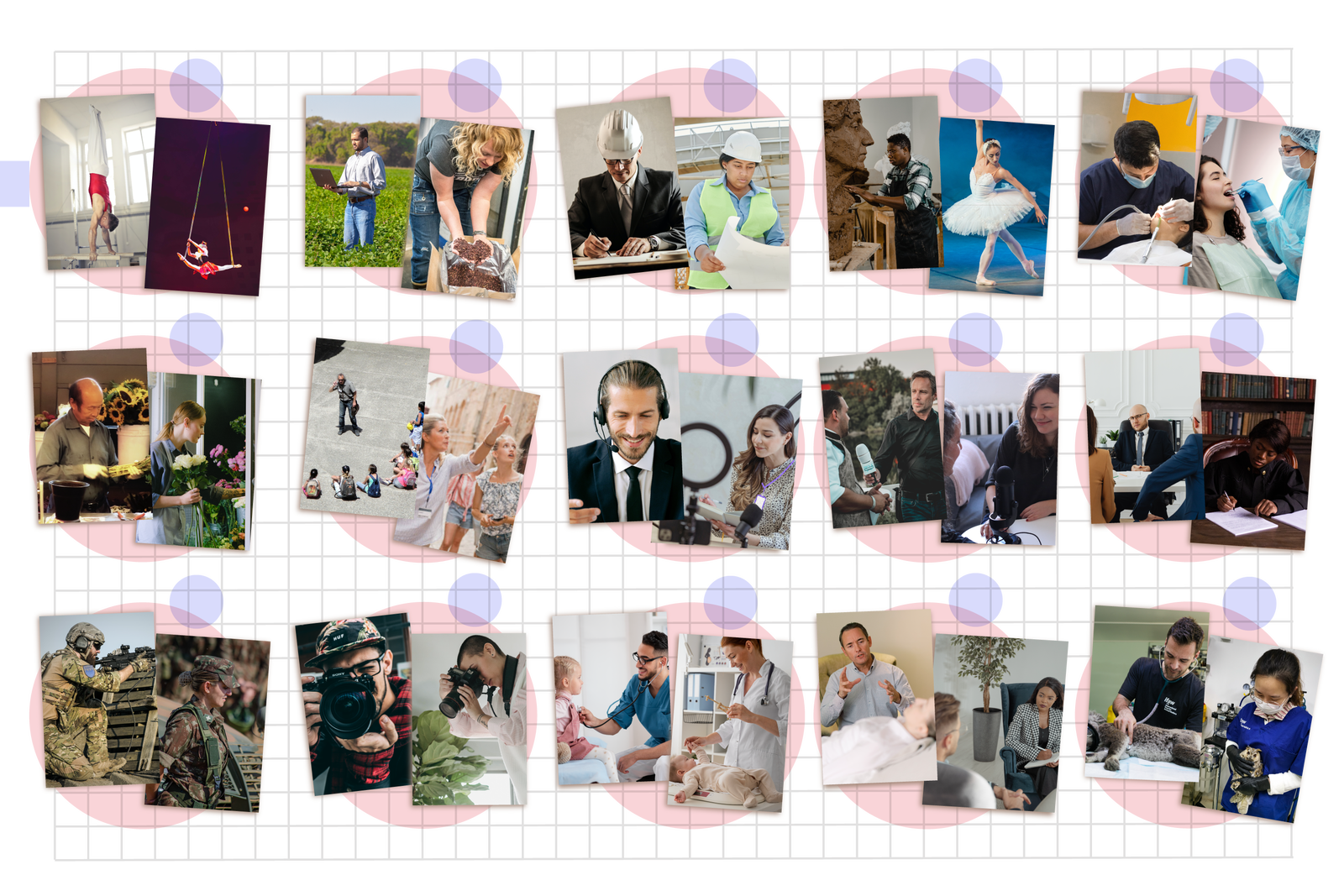 Découvre les goûts des personnes décrites ci‑dessous et fais correspondre deux métiers pour chacun.