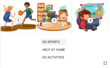 Grafika składa się z trzech ilustracji ułożonych obok siebie w poziomie. Na wszystkich zdjęciach są dzieci przedstawione w różnych sytuacjach. Grafika posiada trzy punkty interaktywne, po naciśnięciu których pojawiają się tekst oraz nagrania. Transkrypcja do nagrań znajduje się poniżej.