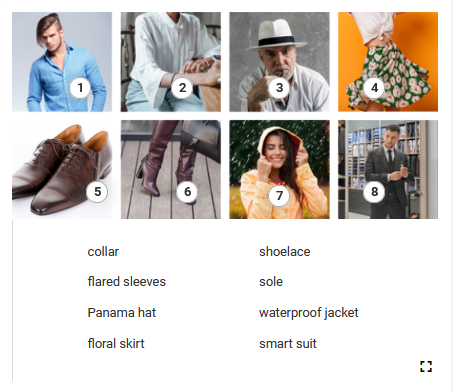 Poniższe zdjęcia przedstawiają różne ubrania. W tej sekcji nauczysz się szczegółowo opisywać niektóre elementy stroju i akcesoria.