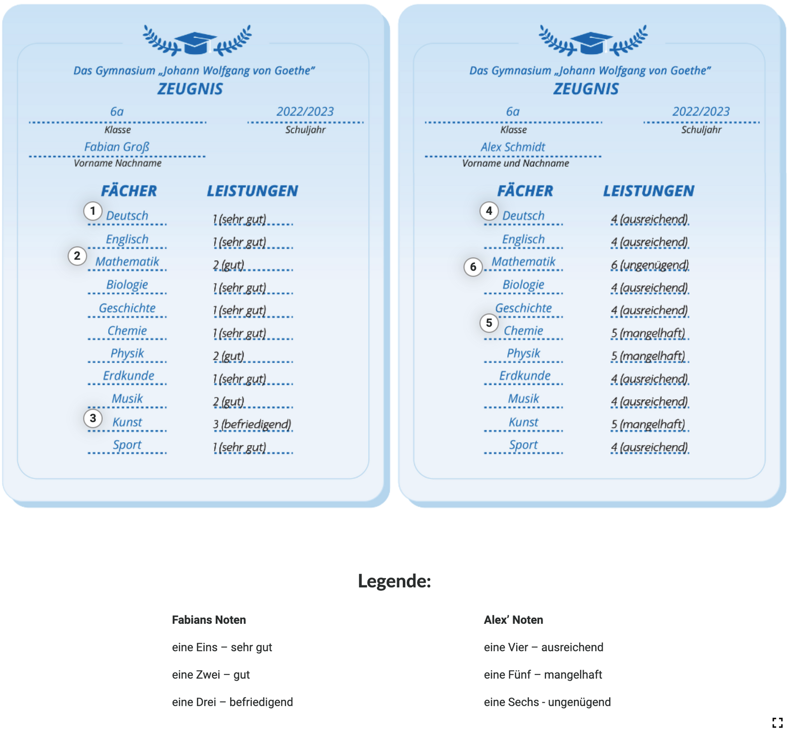 Die Schulzeugnisse von Fabian und Alex