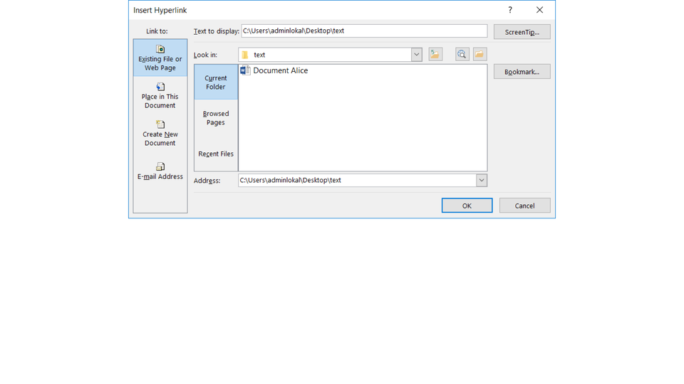 • If you want to change the text of the link which has been created, right‑click it and select the command Edit link.