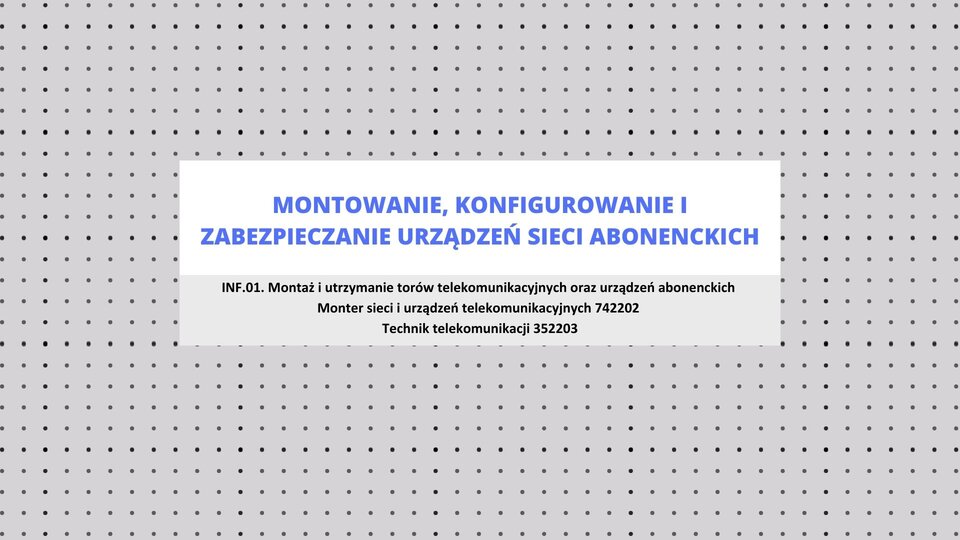 INF.01. Montaż i utrzymanie torów telekomunikacyjnych oraz urządzeń abonenckich – Monter sieci i urządzeń telekomunikacyjnych 742202 oraz Technik telekomunikacji 352203