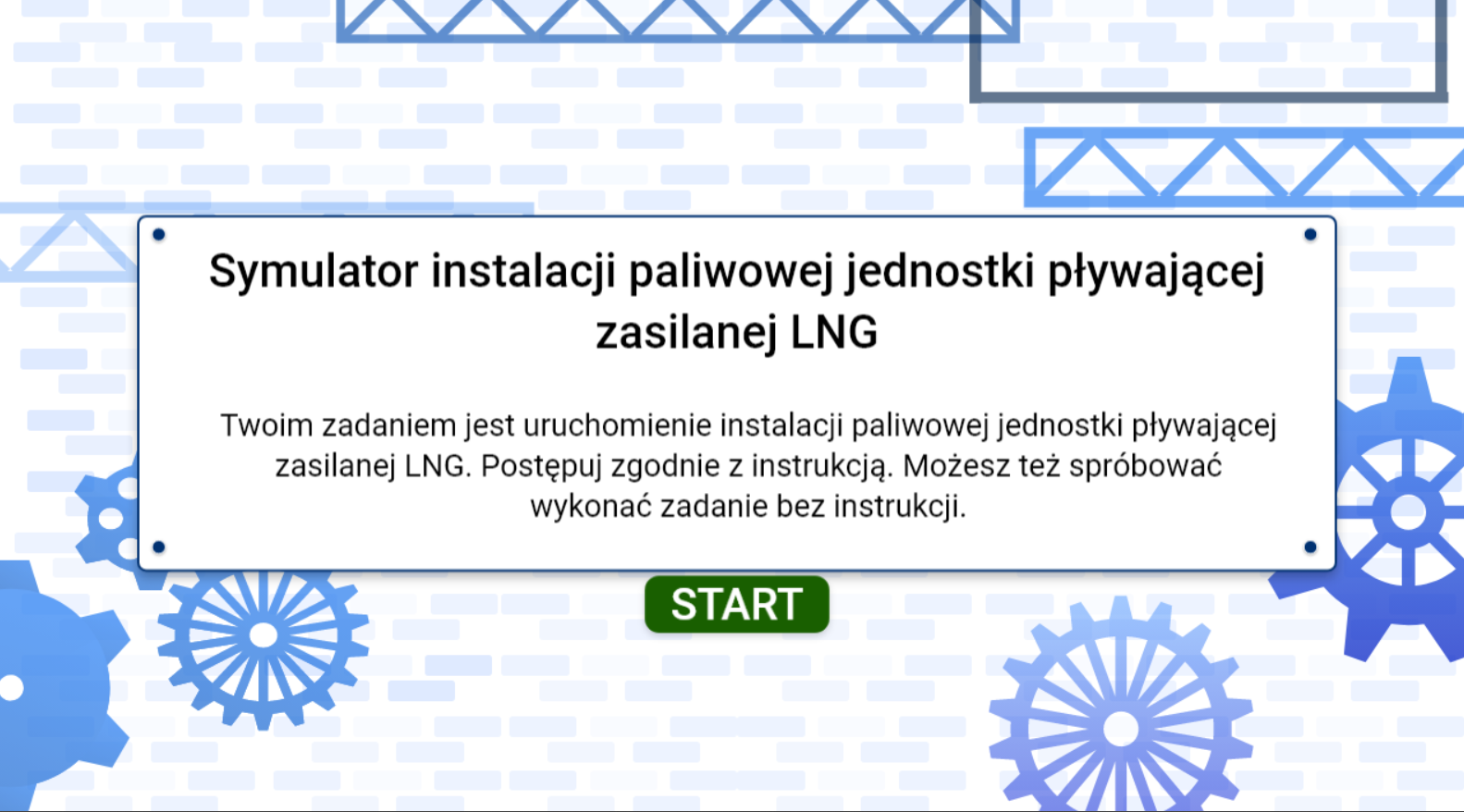 Symulator instalacji paliwowej jednostki pływającej zasilanej LNG pozwala na zapoznanie się z budową tego typu instalacji. Składa się ona z rur, przez które przepływa paliwo. Paliwo można dostarczać z bunkierki lub ze zbiornika. Otwiera się wtedy inne zawory w instalacji.