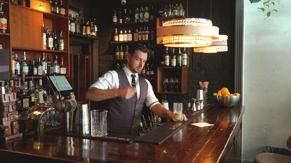 Podczas przygotowywania drinków, barman wykonuje wiele czynności. Jedną z nich jest łączenie ze sobą składników drinków poprzez jego wstrząśnięcie, czyli 1. stirowanie, 2. on the rocks, 3. szprycowanie, 4. z twistem, 5. muddlerowanie, 6. shakerowanie. Aby sporządzić koktajl, w skład którego wchodzą cząstki świeżych owoców czy zioła, barman powinien wykonać 1. stirowanie, 2. on the rocks, 3. szprycowanie, 4. z twistem, 5. muddlerowanie, 6. shakerowanie, czyli rozgnieść poszczególne składniki napoju. Natomiast jeśli barman chce podać klientowi np. whisky z lodem i nalewa składnik bezpośrednio na lód umieszczony w szklance – wykonuje tzw. nalewanie 1. stirowanie, 2. on the rocks, 3. szprycowanie, 4. z twistem, 5. muddlerowanie, 6. shakerowanie.