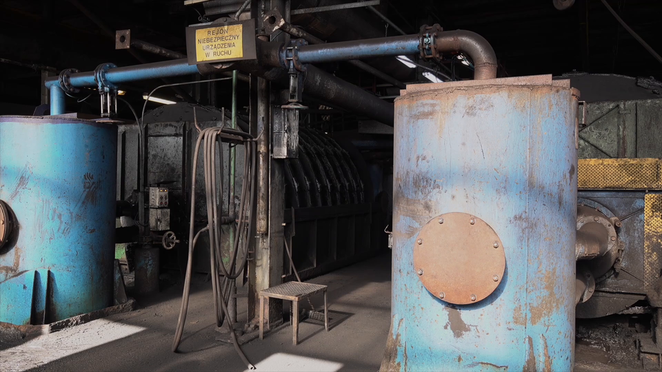 Film przedstawia urządzenie pomocnicze. Znajduje się wewnątrz hali zakładu przeróbczego. Stanowi je duży bęben, obracający się wokół osi poziomej. Jest on zamontowany na pewnej wysokości i wsparty na układzie wprawiającym go w ruch. Dalej przedstawiono zbliżenie na wlot. Jest nim zasysane powietrze do wnętrza walcowatej komory. .