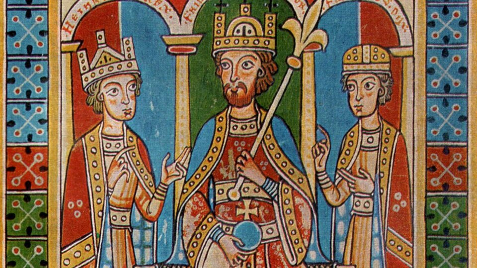 W XI–XII wieku władcy Niemiec toczyli spór z papieżami o zakres władzy. Dla wielu Europejczyków było oczywiste, że władza cesarska, władza króla rzymskiego jest co najmniej równa papieskiej. Czasy jednak się zmieniły. Spójrz na tablicę, na której odnotowano moment ukończenia budowy i poświęcenia w 1438 roku kościoła we frankońskiej miejscowości Hassfurt. Przy okazji wymieniono istotne dla fundatorów osoby, które wówczas sprawowały władzę: papieża, zwierzchnika Kościoła powszechnego, biskupa, głowy Kościoła lokalnego, oraz króla Niemiec, Albrechta II
