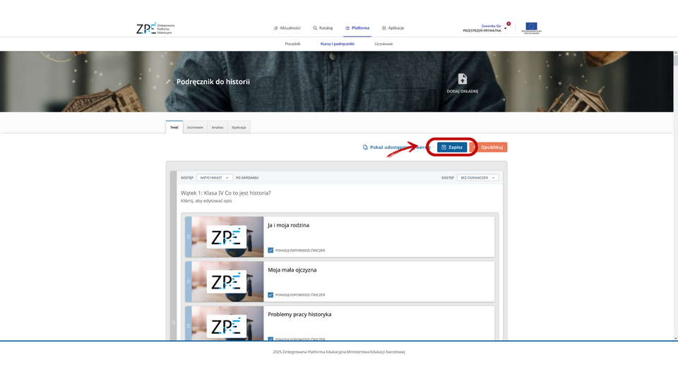 Pamiętaj aby po dodaniu nowego modułu do wątku, kliknąć Zapisz.