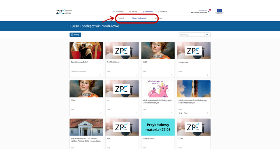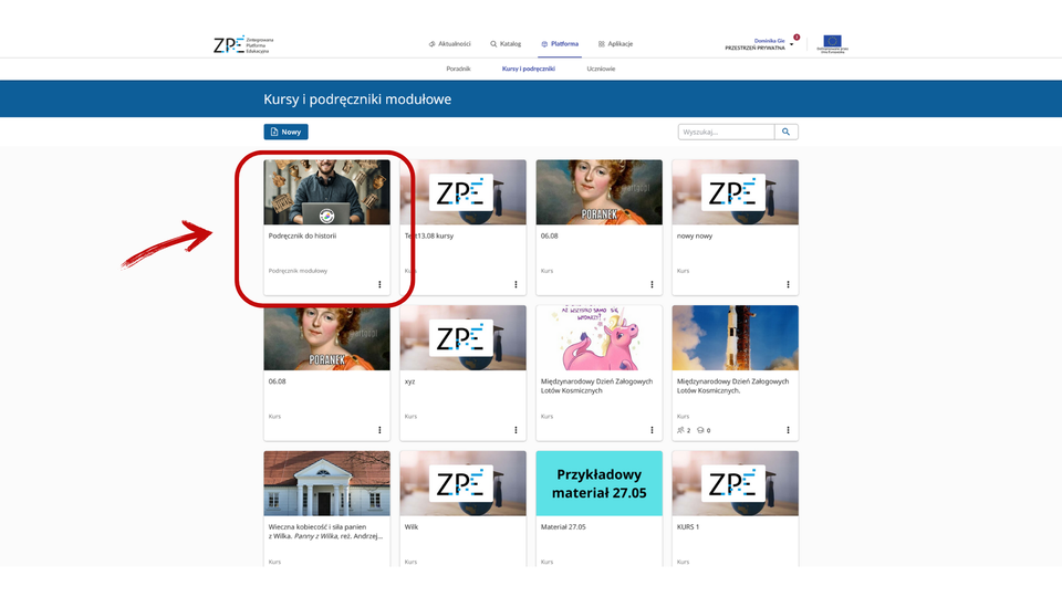 Twój modułowy e‑podręcznik ze zmienionym tytułem i okładką jest widoczny w zakładce Kursy i podręczniki modułowe.