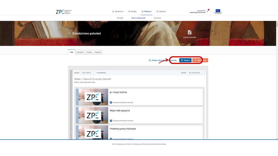 Po zmianie okładki i tytułu, kliknij przycisk Zapisz.