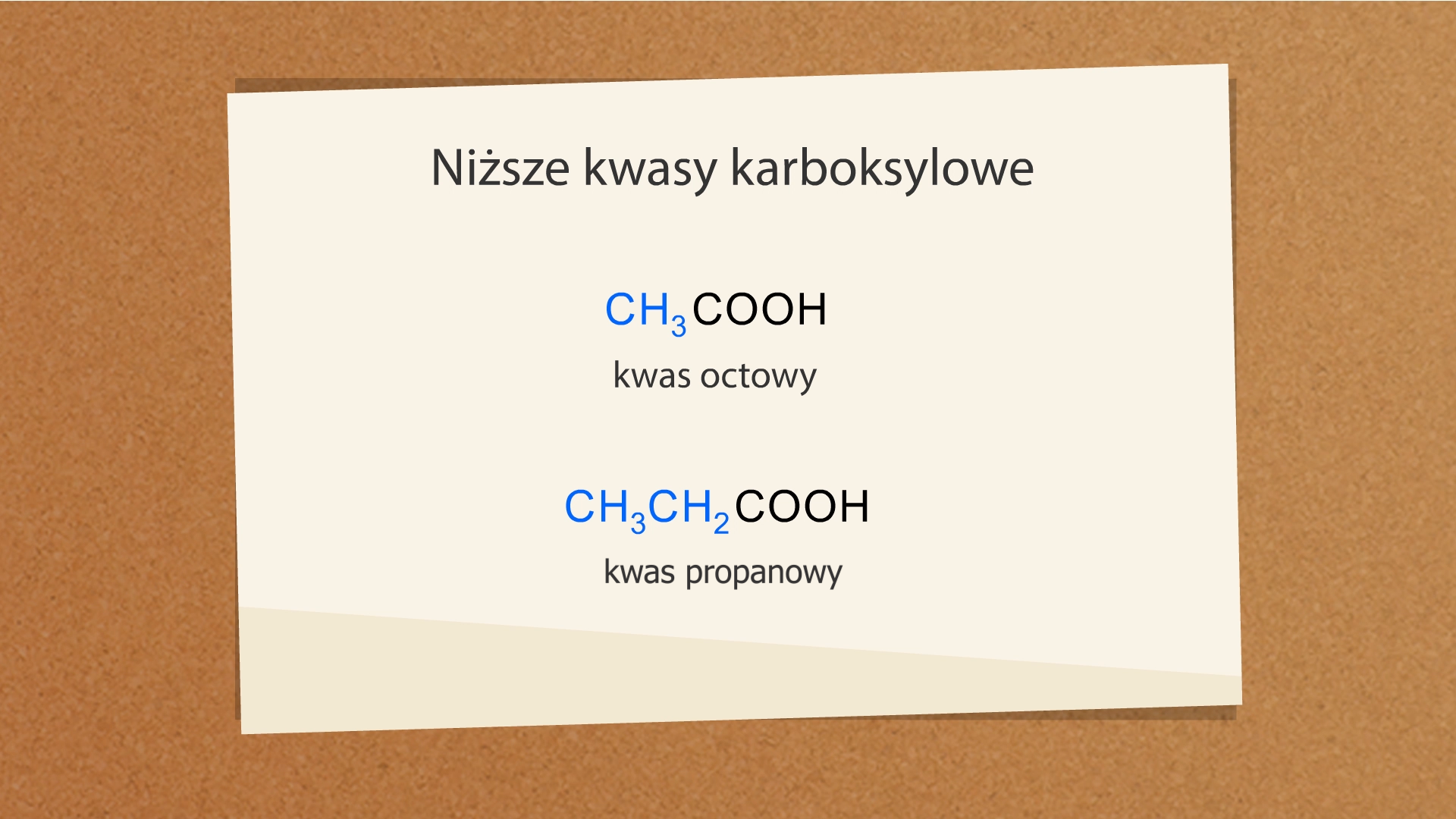 Animacja pod tytułem Przykłady niższych i wyższych kwasów karboksylowych