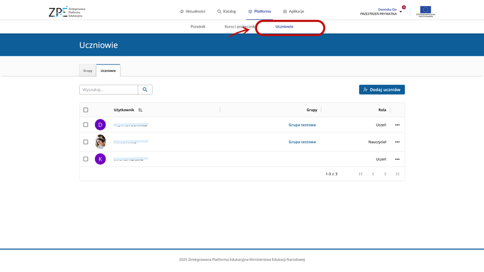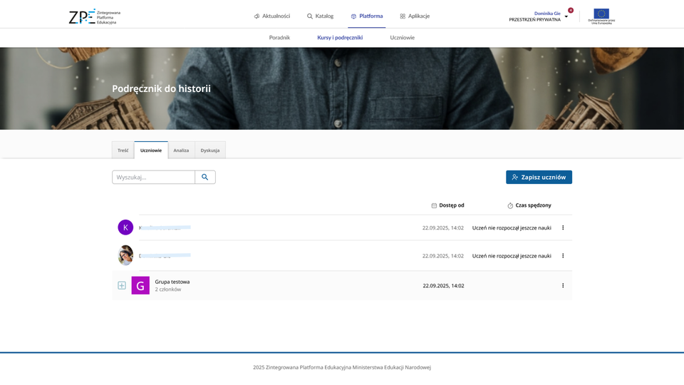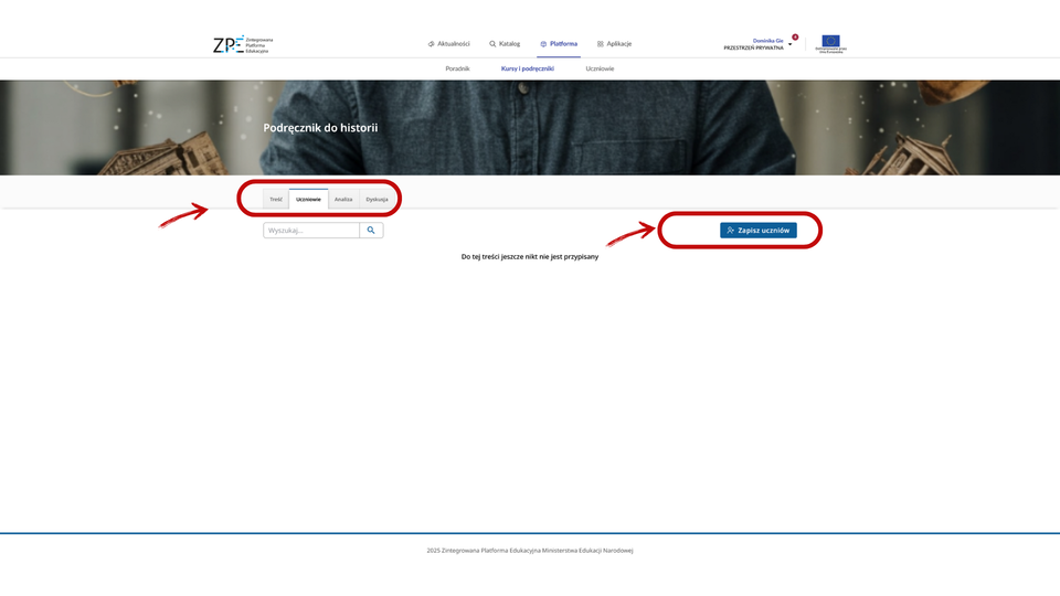 A następnie przejdź do zakładki Uczniowie i kliknij Zapisz uczniów.